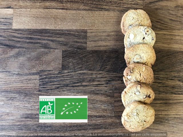 Noisettes/Cranberries : Farine T80, Beurre, Oeufs, Sucre, Noisettes, Cranberries, Bicarbonate, Sel.